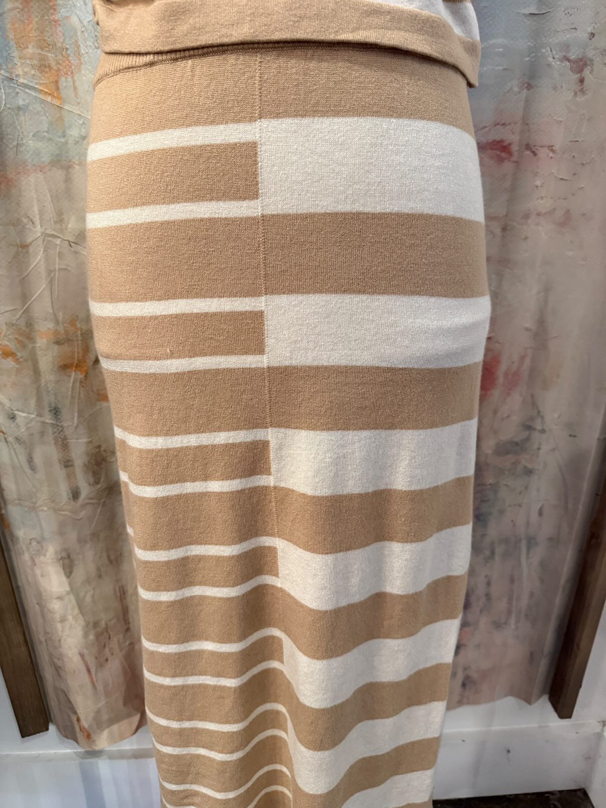 Expertly crafted, the Stripe Fitted Knit Skirt offers both comfort and style. Made from high-quality materials, this skirt features a fitted design that hugs your curves in all the right places. The timeless stripe pattern adds a touch of sophistication, making it perfect for any occasion.