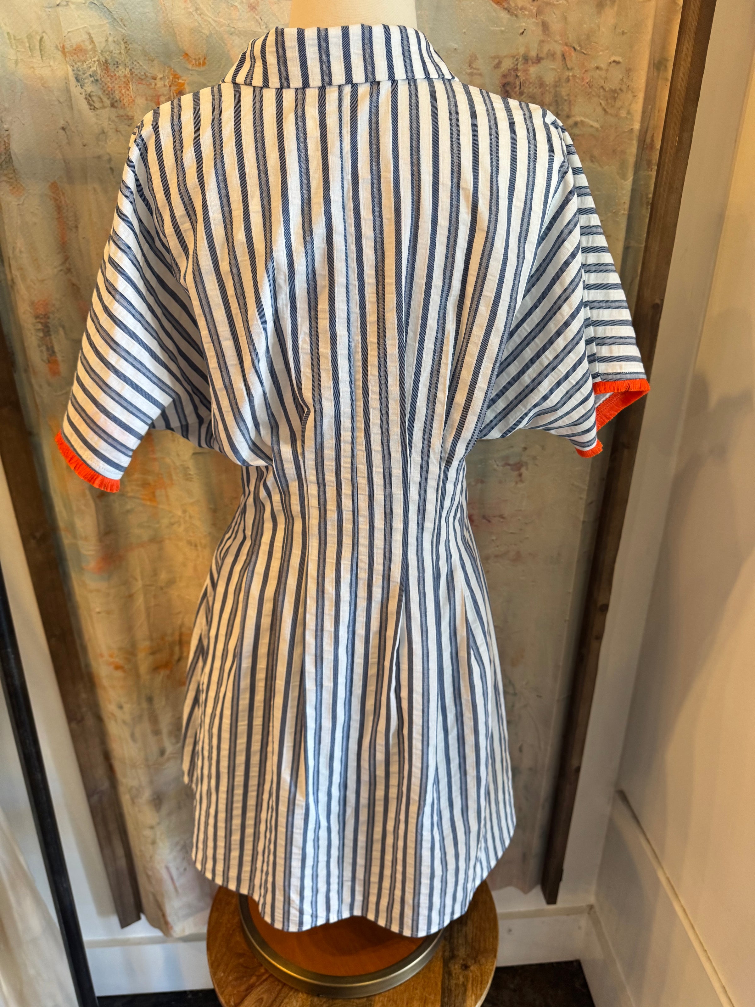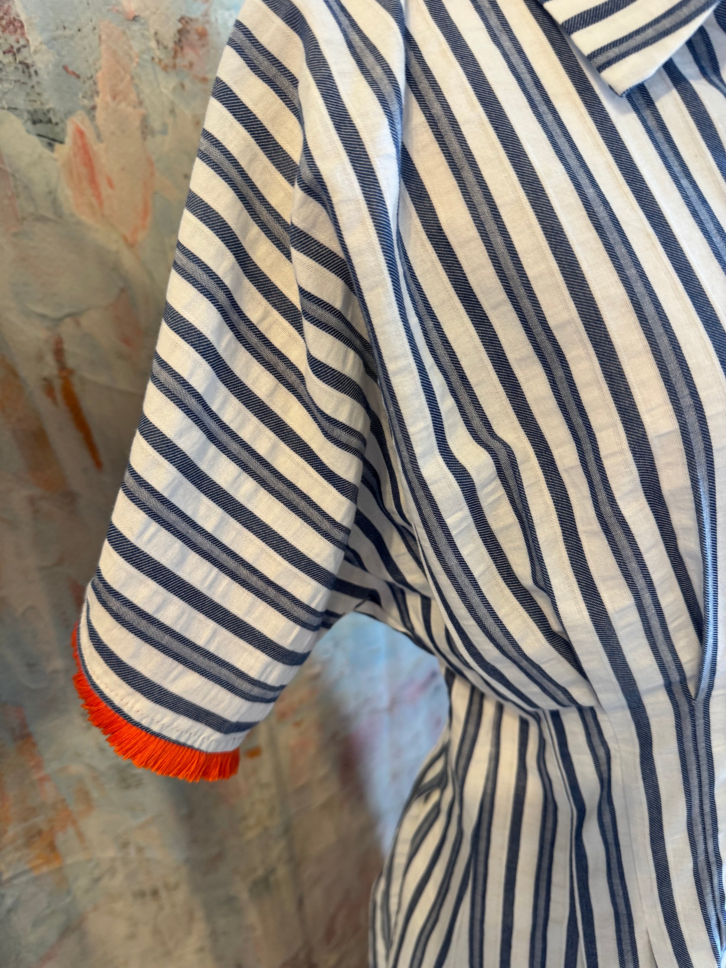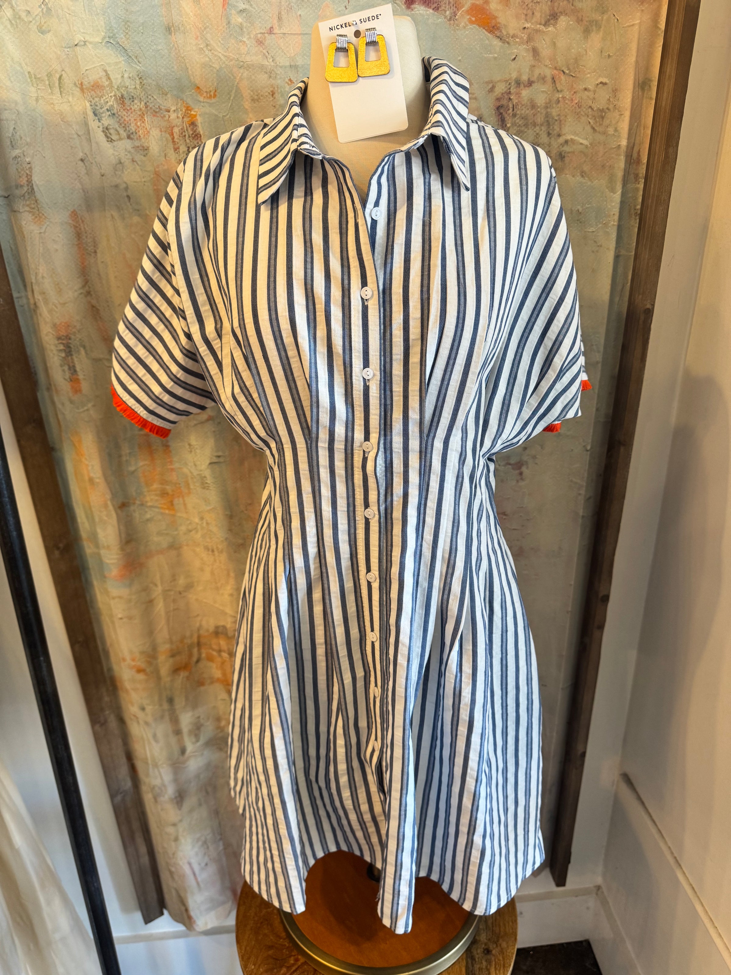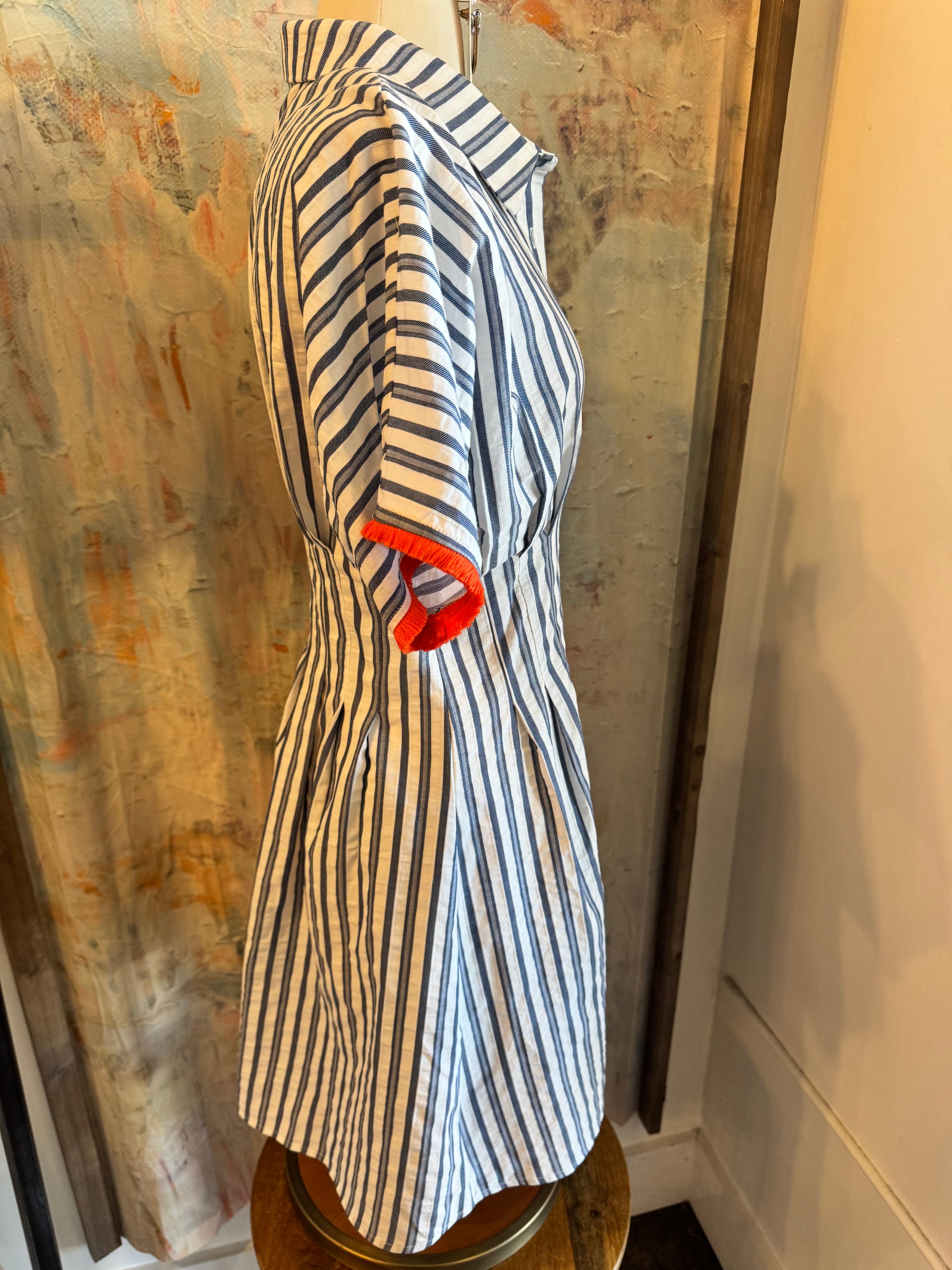 Stripe Shirt Dress with Orange Tassel Detail