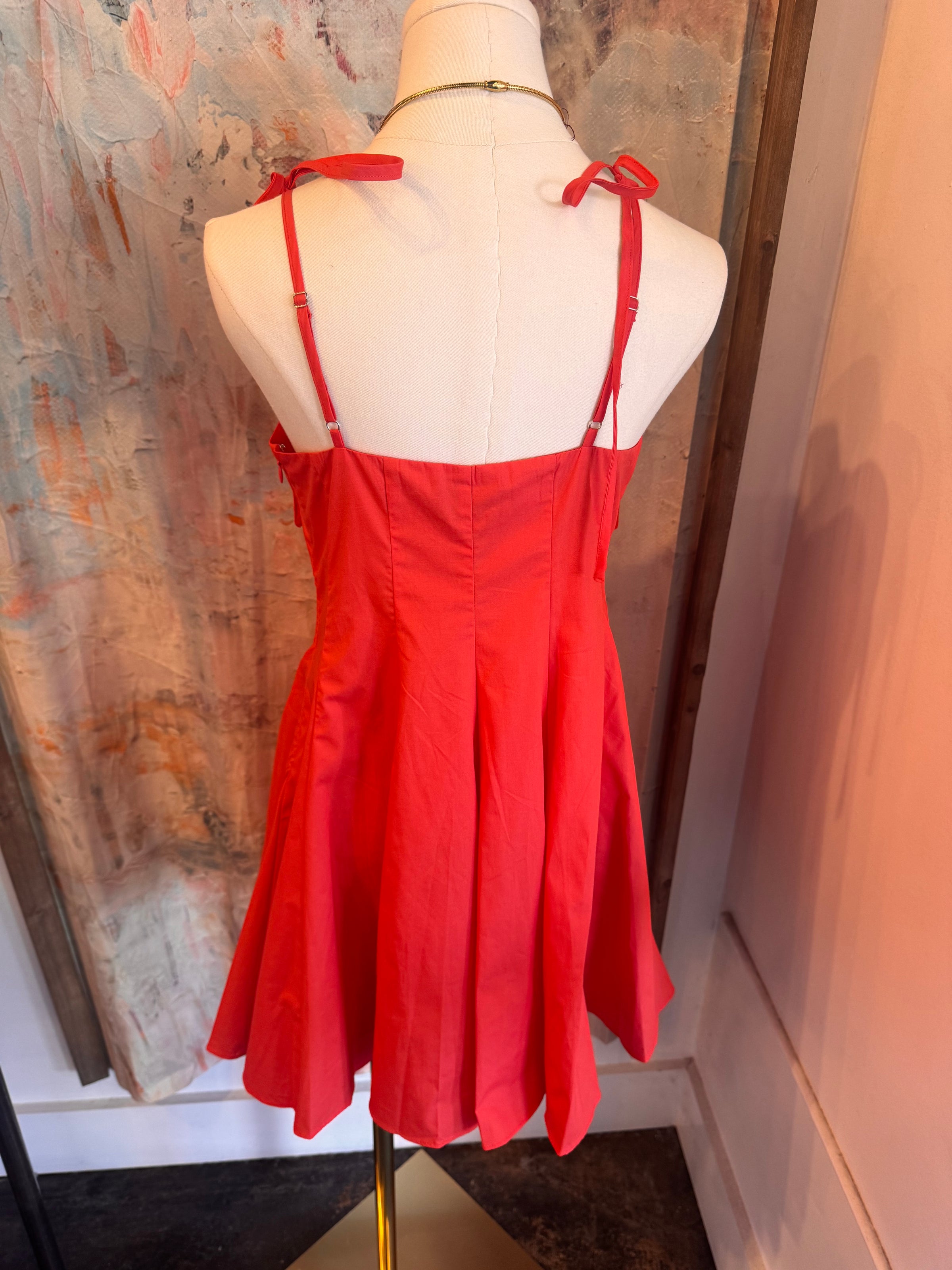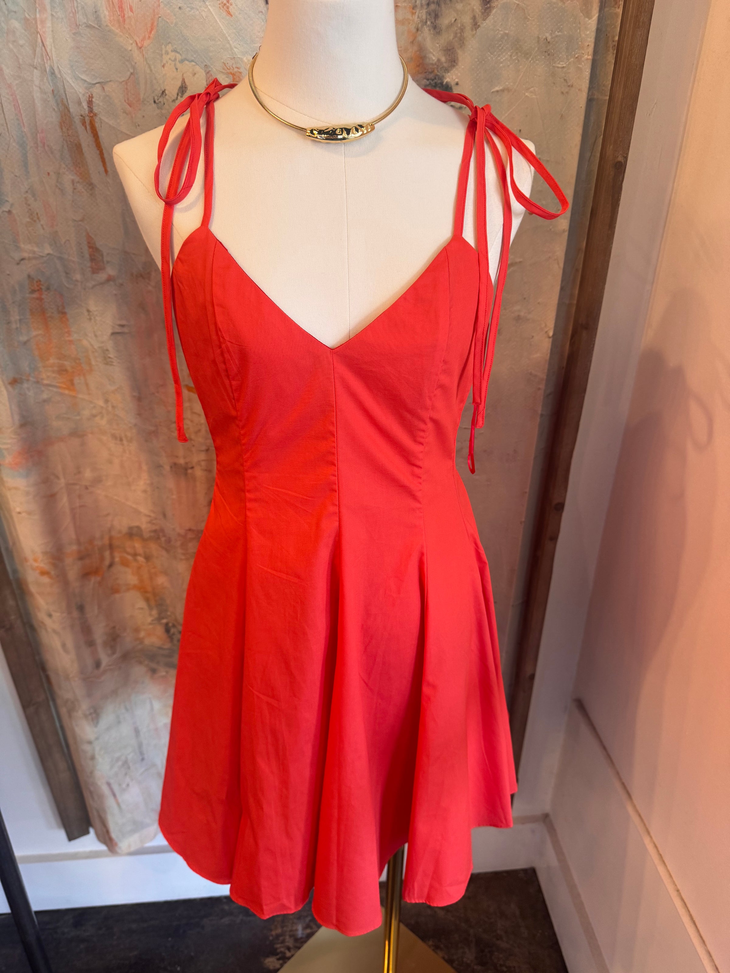Tie shoulder straps offer versatility in fit, enhancing comfort and adaptability for various body types. This design element ensures ease of movement, making it suitable for both casual and semi-formal occasions.